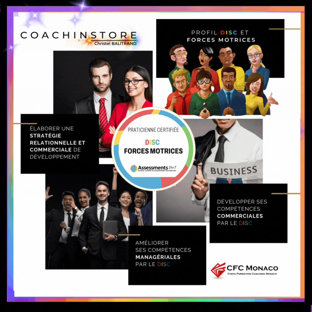 + 2 questionnaires personnels en ligne (DISC et Forces Motrices) à compléter .