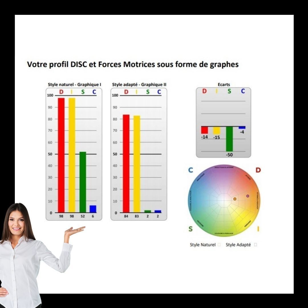 ➕ En option et sur demande ciblage du rapport DISC Assessments 24×7 : Management, Commerce, Leadership, Communication, Recrutement, Équipe