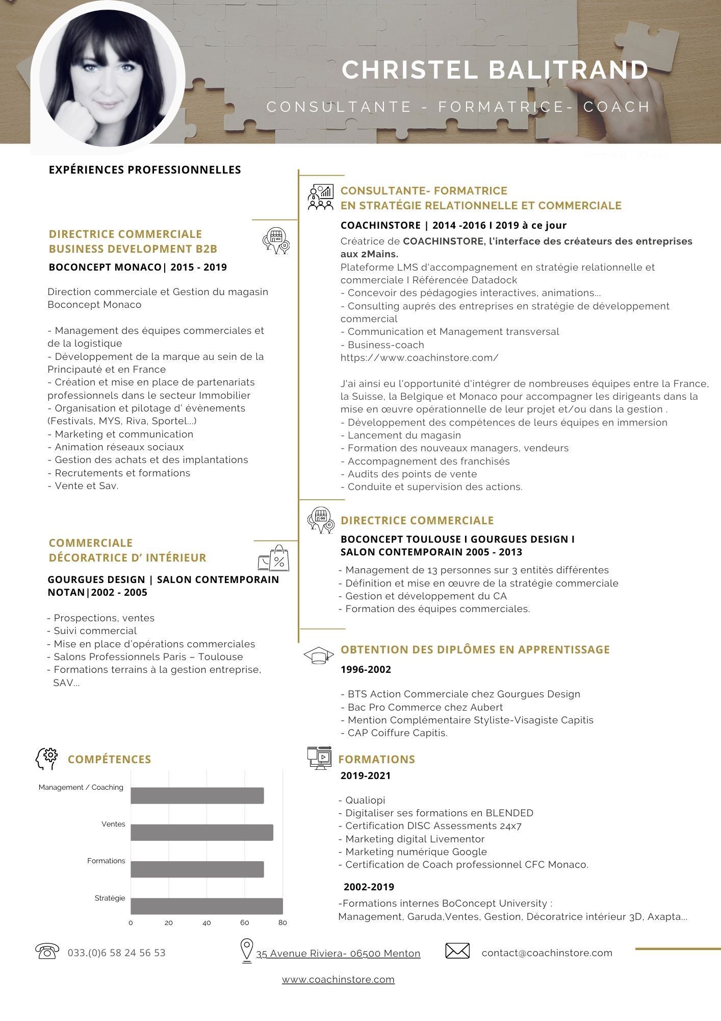 L’organisme de formation professionnelle EI- Christel Balitrand sous le nom de marque COACHINSTORE, 153 Avenue de Castres, 31500 Toulouse enregistrée sous le numéro de déclaration 76311150131 du préfet de région Occitanie propose et dispense des formations en live en intra entreprise, ainsi que des formations blended associant à la fois le présentiel et les formations ouvertes et à distance en mode Elearning.